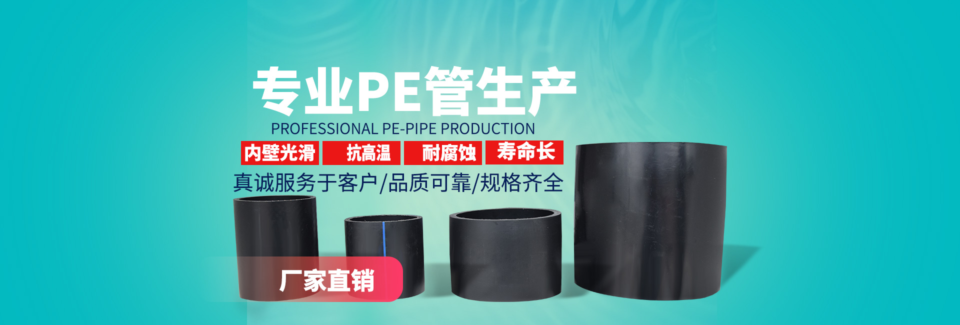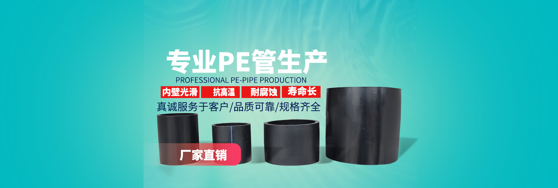 公司年产Φ20-Φ1200各类PE管材50000吨,主要产品有:PE给水管材、PE燃气管材、PE阻燃抗静电矿用管材、PE工程穿线管材及各类配套管件。产品具备连接可靠、低温抗冲击、抗开裂、抗老化、耐腐蚀、工程造价低、使用寿命长、施工时间短、卫生性好、运输方便等一系列优点,广泛应用于城镇供水、天然气、煤气输送、食品、化工、矿砂、泥浆输送、园林绿化管网及置换水泥管、钢管和铸铁管等诸多领域